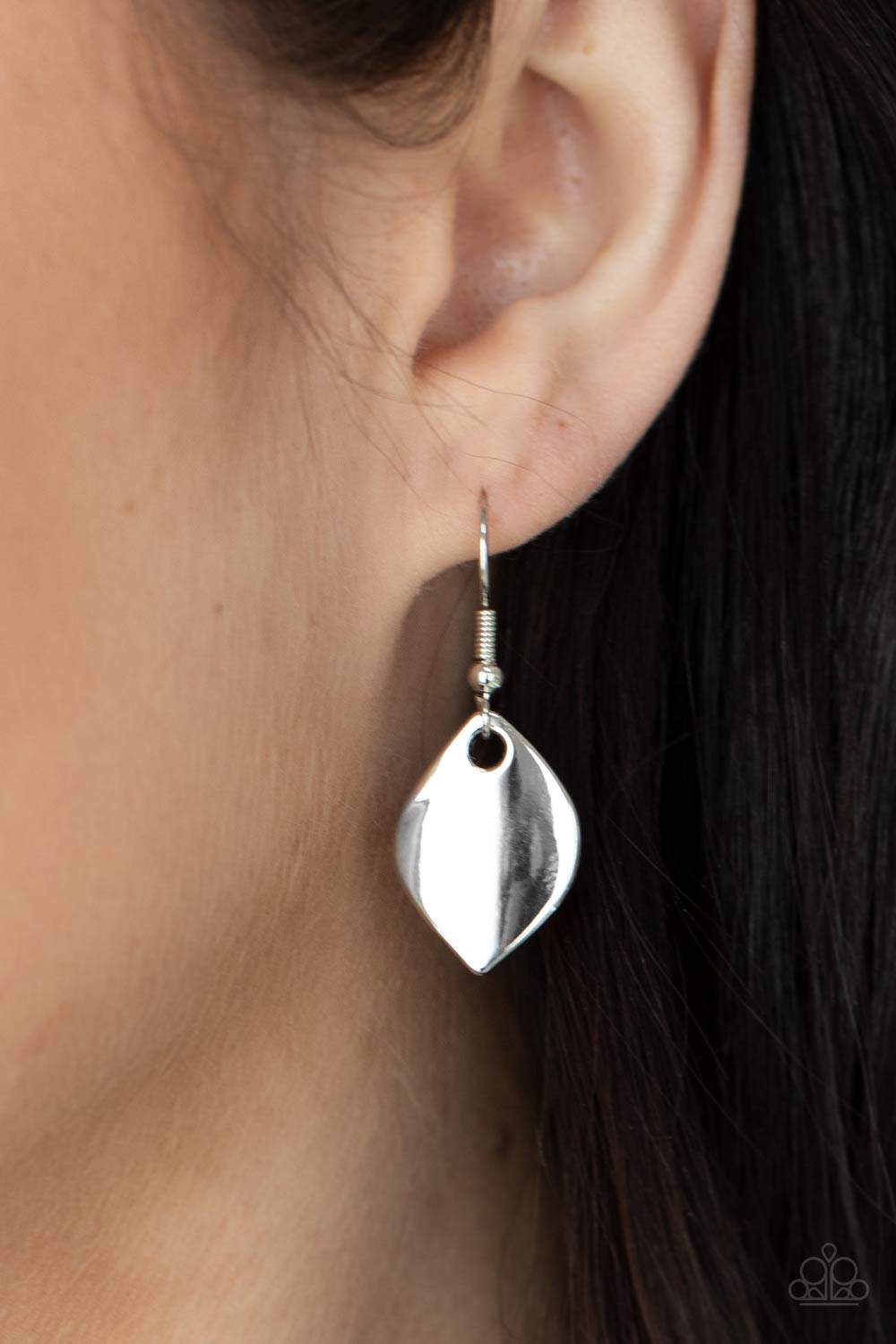 Varying in size, flared silver frames and a hammered shiny copper plate are knotted in place at the bottom of a white cord for an artisan inspired display. Features an adjustable clasp closure.